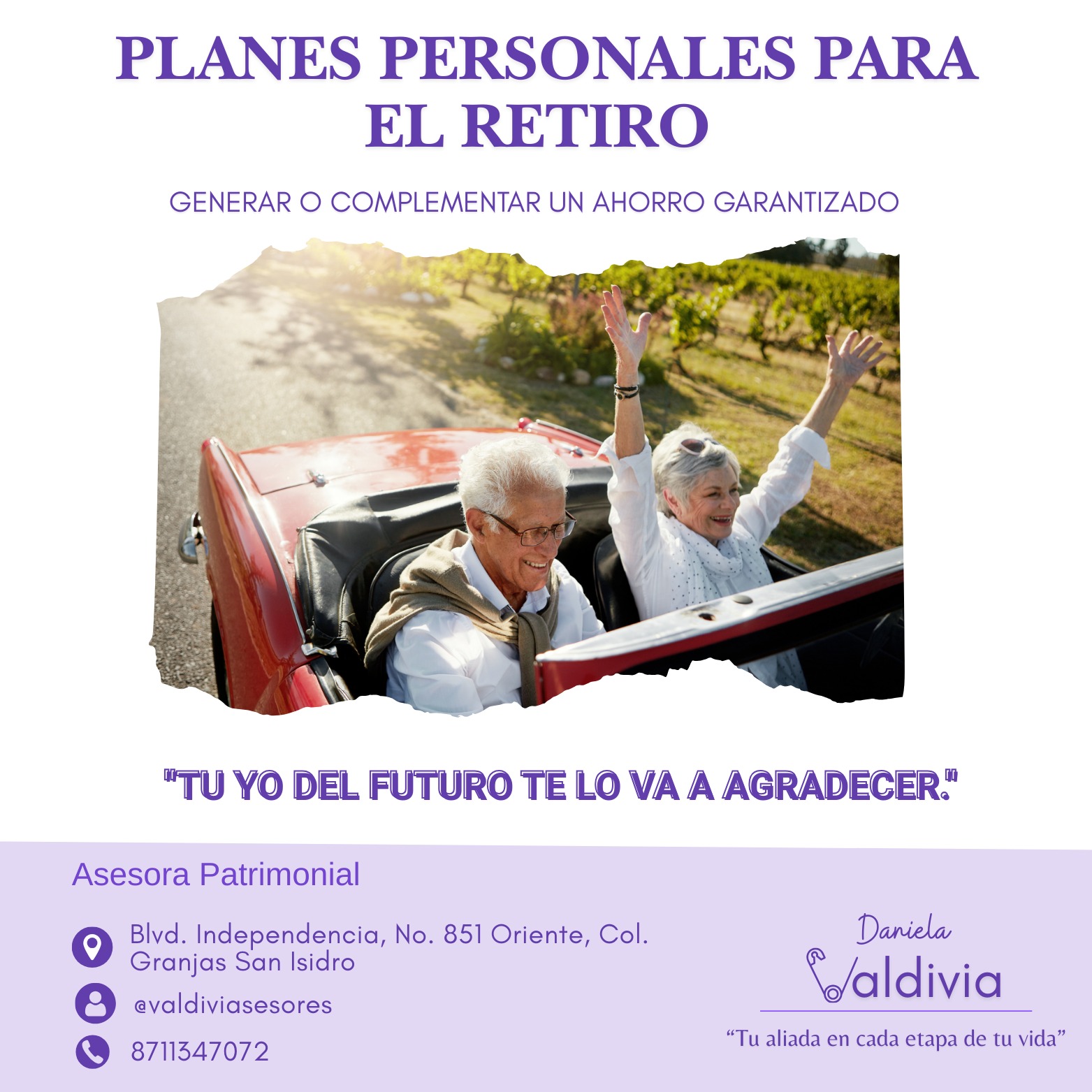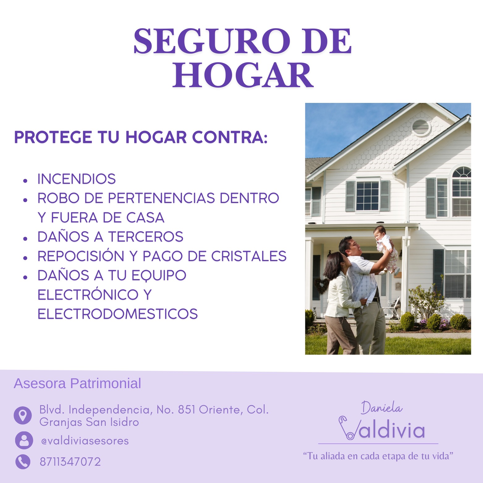 “Brindar asesoría personalizada y honesta que proteja el patrimonio, la salud y los sueños de cada cliente, creando relaciones de confianza a largo plazo y aportando soluciones que generen tranquilidad en cada etapa de la vida.”
