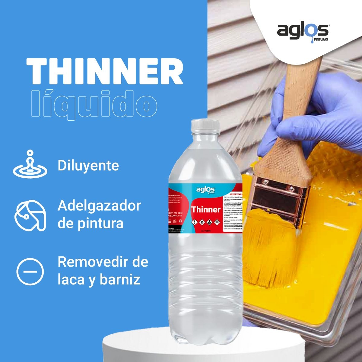 Con más de 24 años de operación, AGLOS también fabrica y distribuye pinturas y recubrimientos de alta calidad para uso industrial y residencial. Su catálogo incluye pinturas base solvente, vinílica, recubrimientos térmicos e impermeabilizantes, selladores, pigmentos, pintura en polvo, masilla plástica, gel antibacterial y sanitizantes. Además poseen certificación ISO 9001, 14001 y 45001, asegurando calidad, innovación y seguridad.