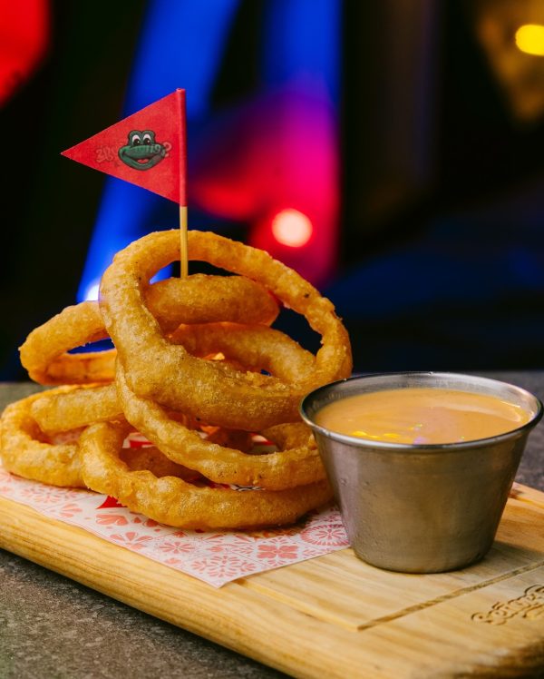 Bebidas emblemáticas como yardas de cócteles y cervezas artesanales.